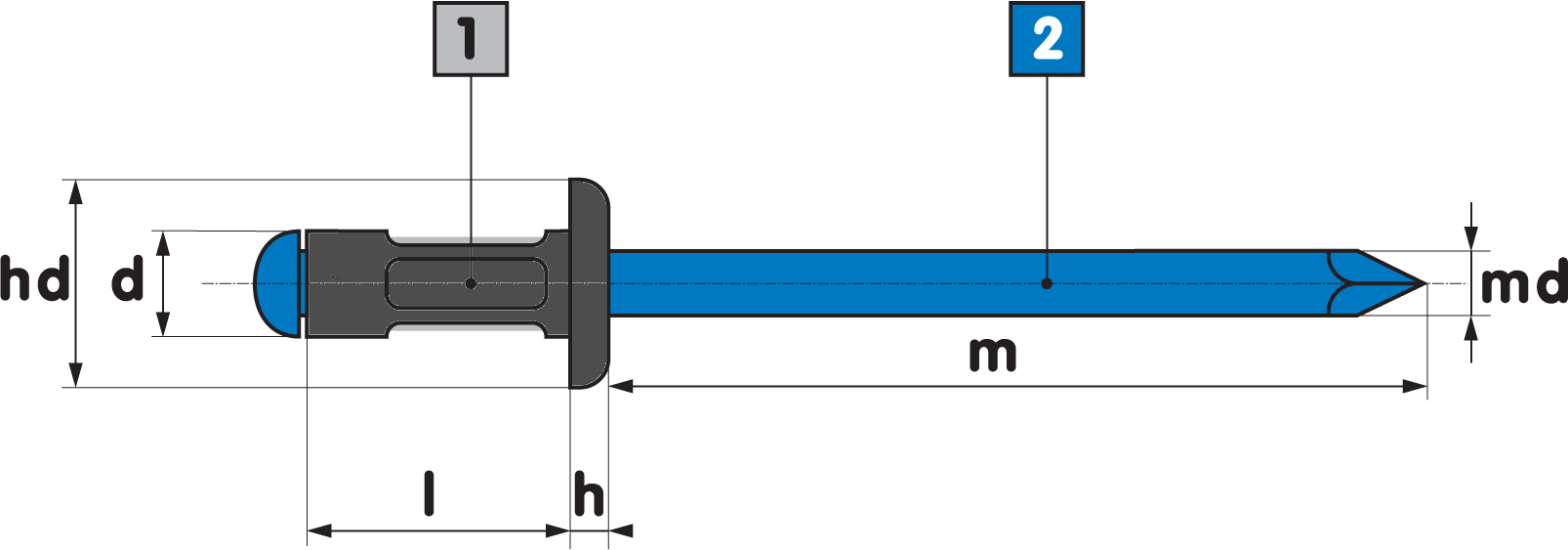 Multigrip Rivet Dome Head - Alum body/Steel Mandrel - Ral 7005 - MERLIN GREY